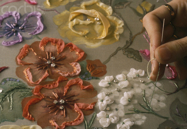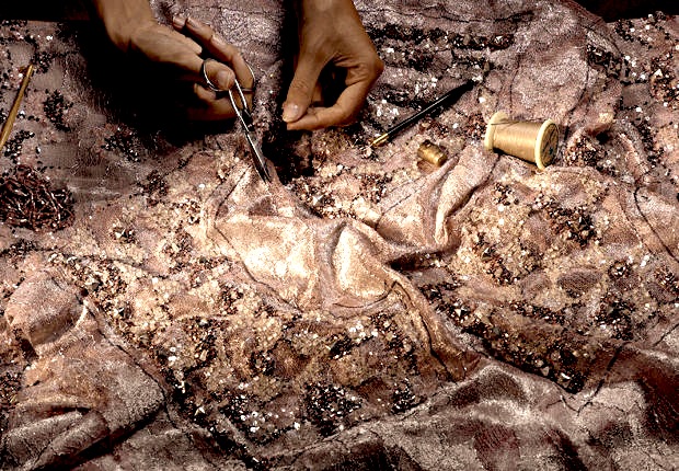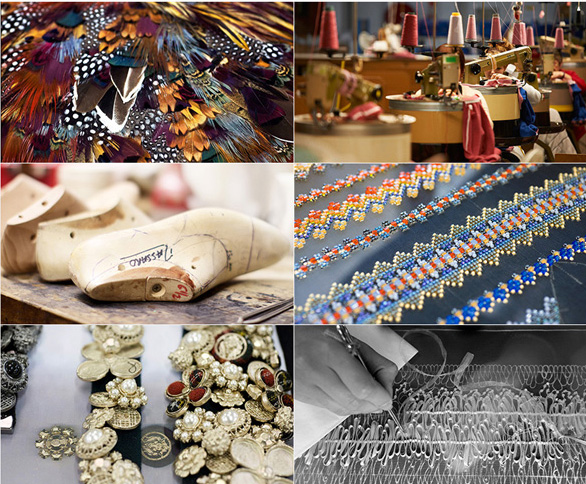 又如始创于1858年的刺绣坊Francois Lesage。可以说是刺绣技法与刺绣存品最为齐全的鲜活刺绣博物馆。成立至今已制造了4万个刺绣版本,拥有超过60吨供应品存货。一件刺绣从描样、钉珠、刺绣等等可以说凝聚了历史与技术的精华所在。尽管它已加盟香奈儿旗下,但仍继续是时装界巨子的首选刺绣供货商。